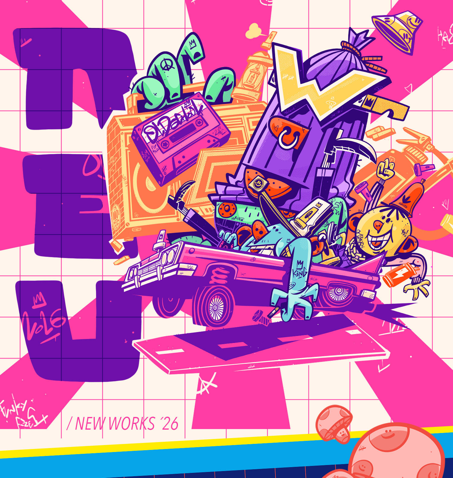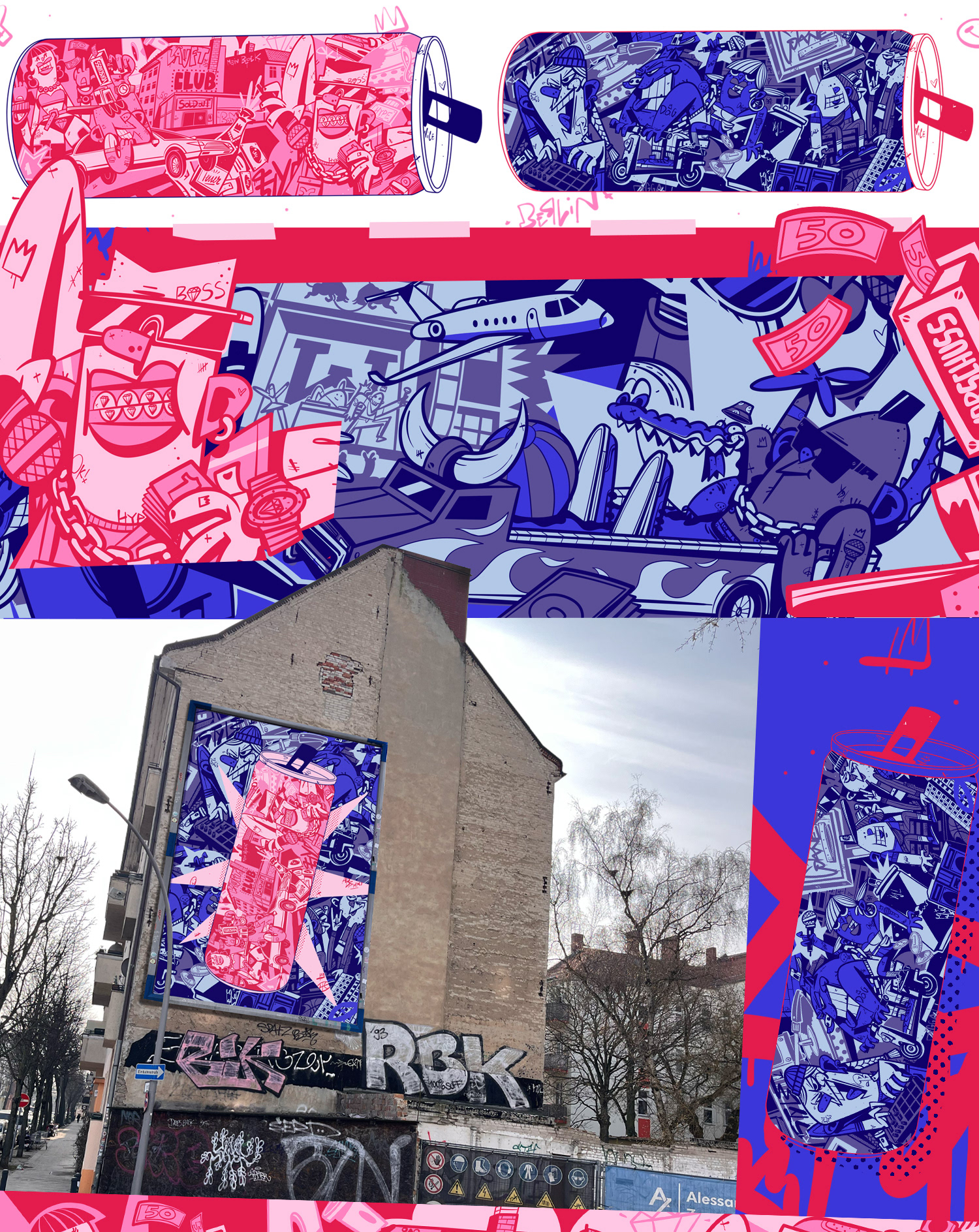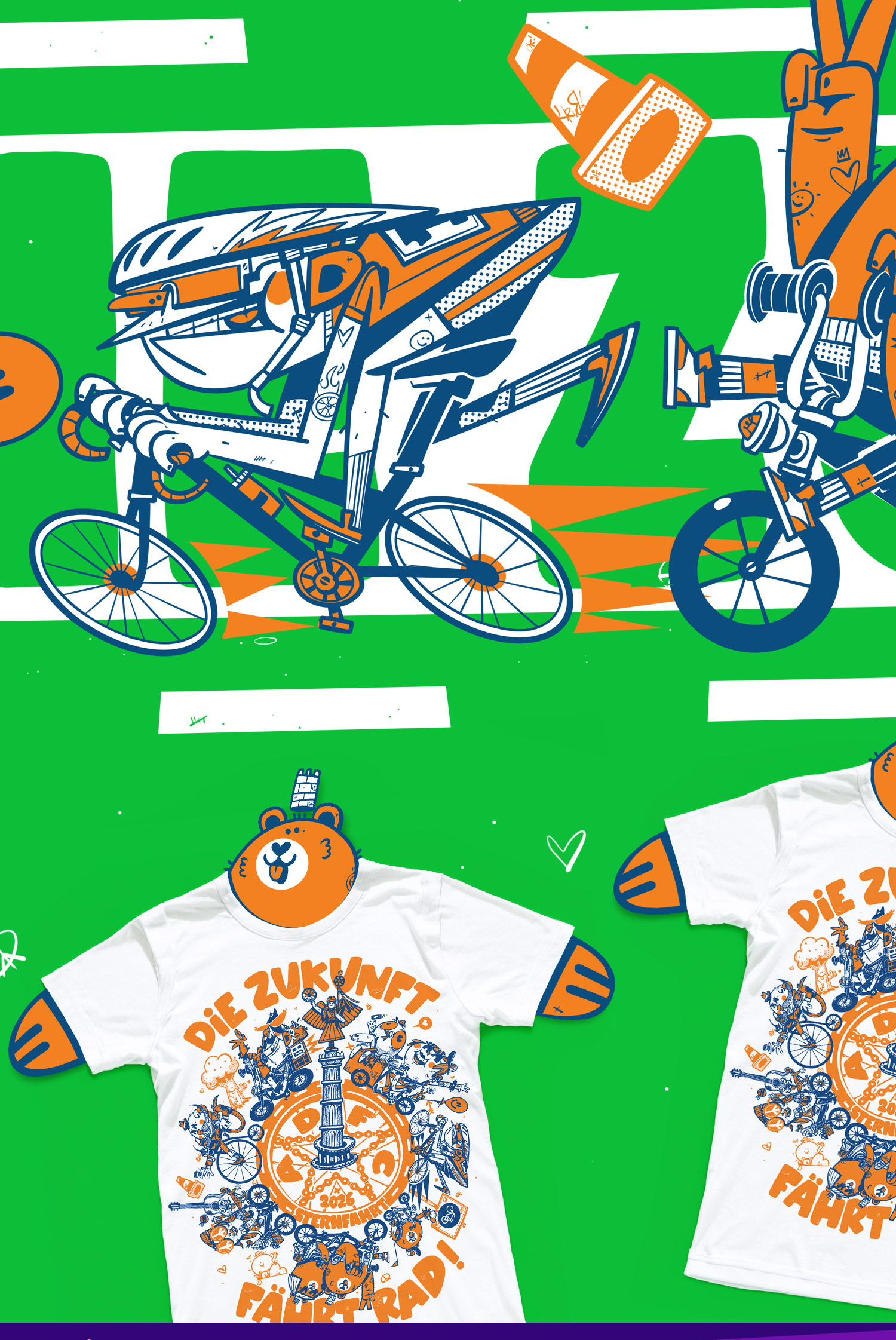 First projects of 2026. Packaging, posters, and T-shirt graphics. Wild urban energy, fast lines, stripped-down colors. Fresh vibes from Berlin.