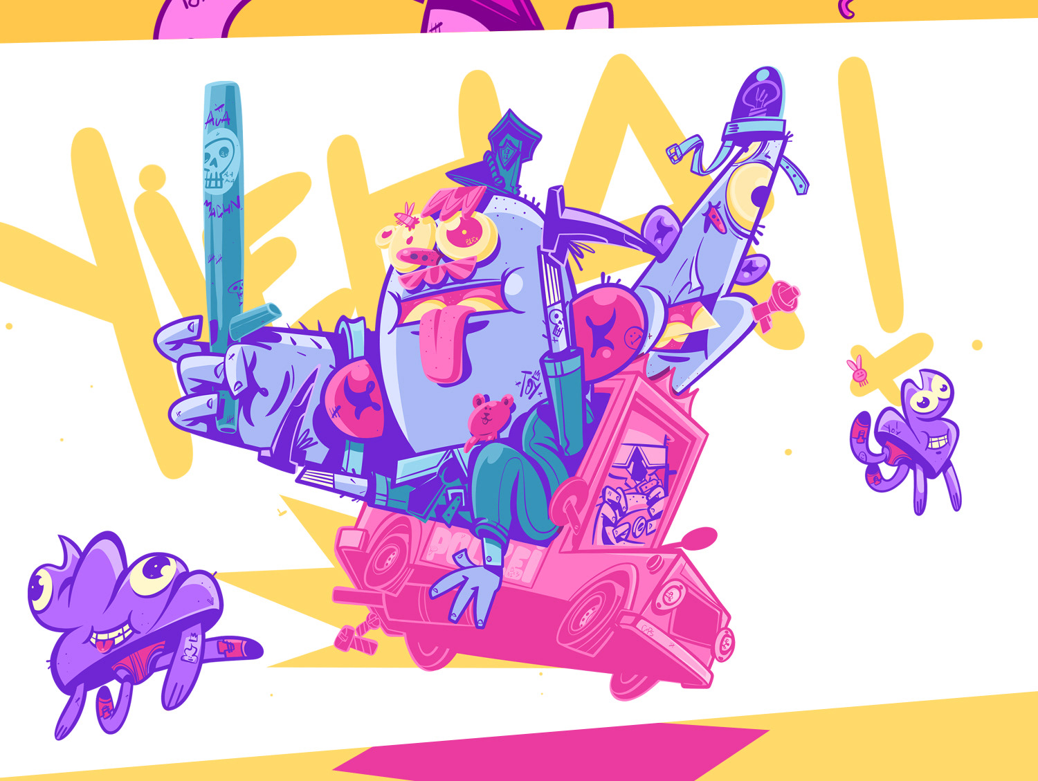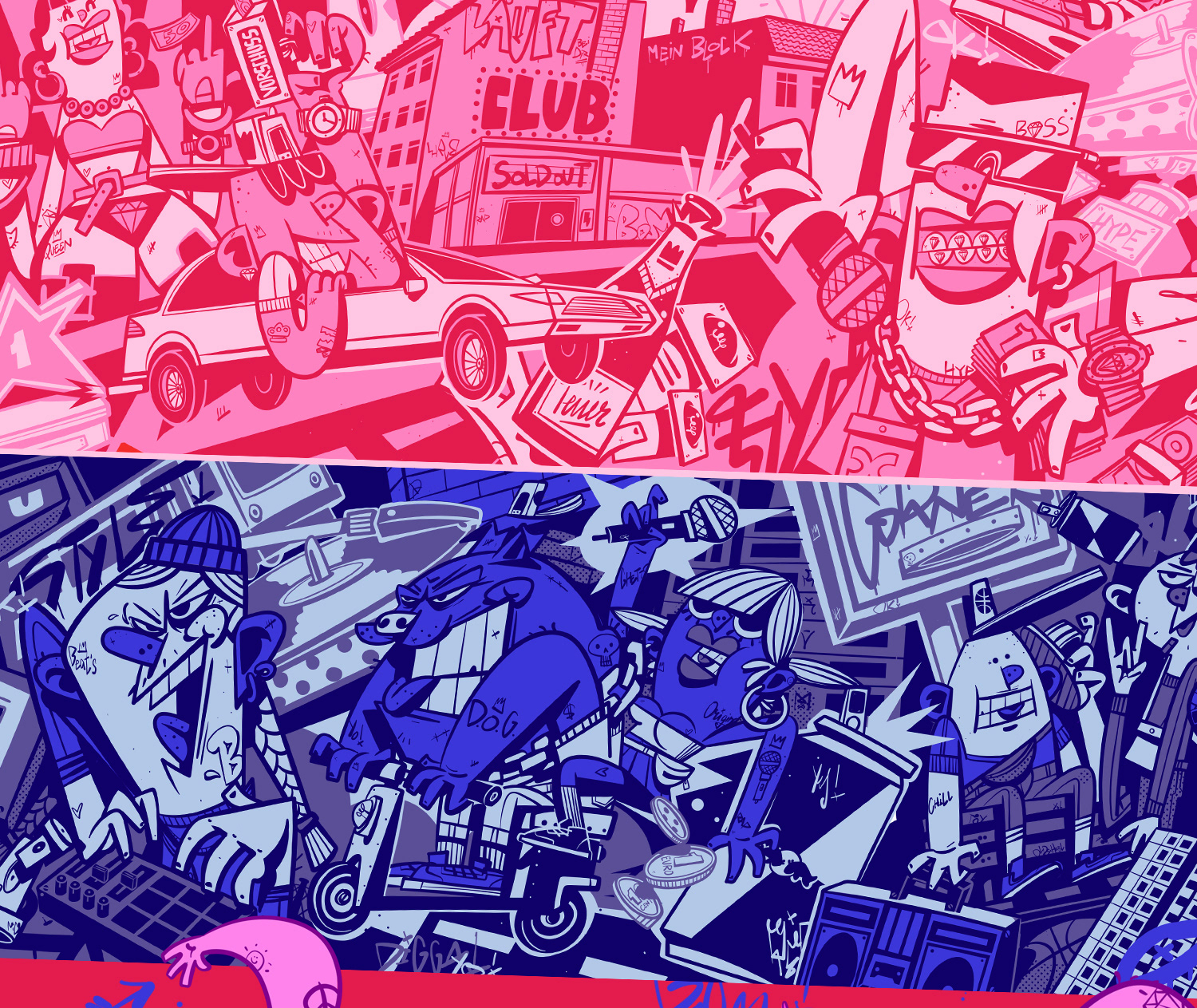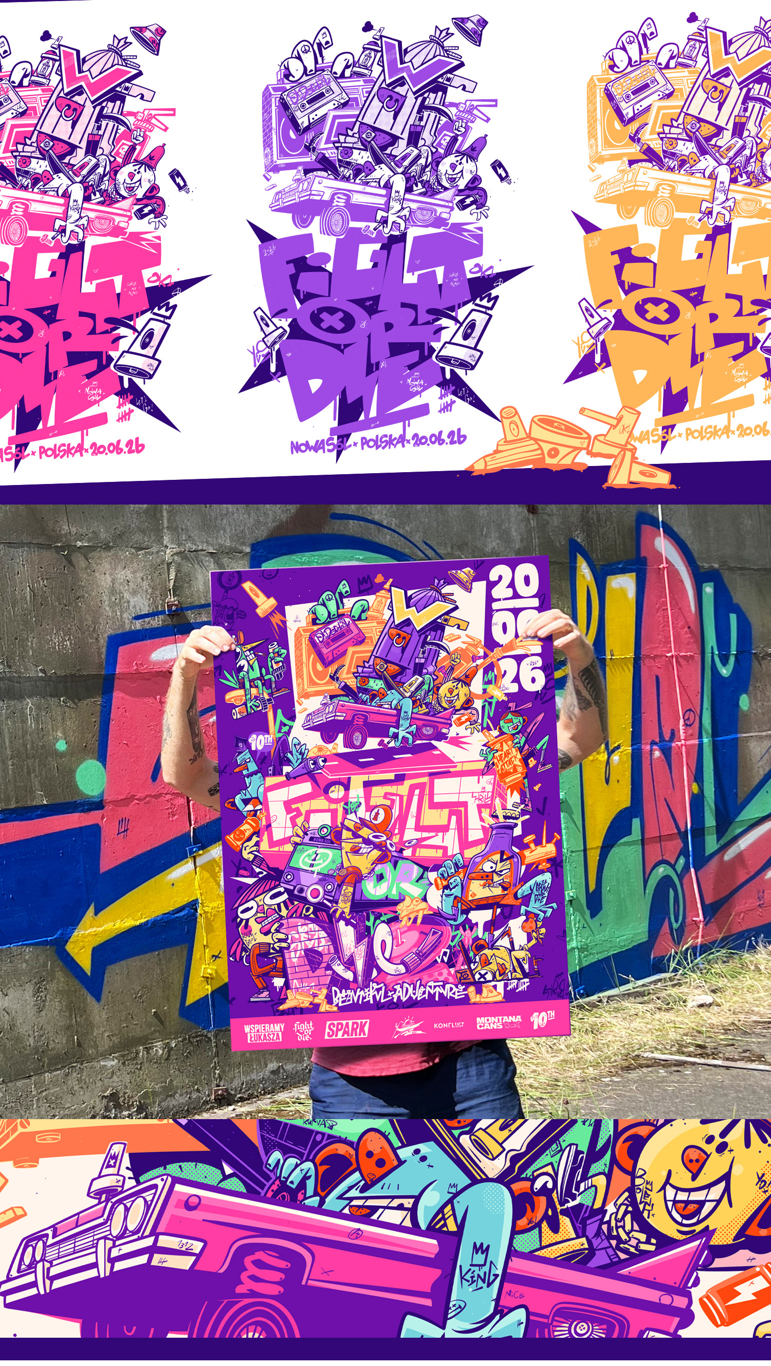 First projects of 2026. Packaging, posters, and T-shirt graphics. Wild urban energy, fast lines, stripped-down colors. Fresh vibes from Berlin.