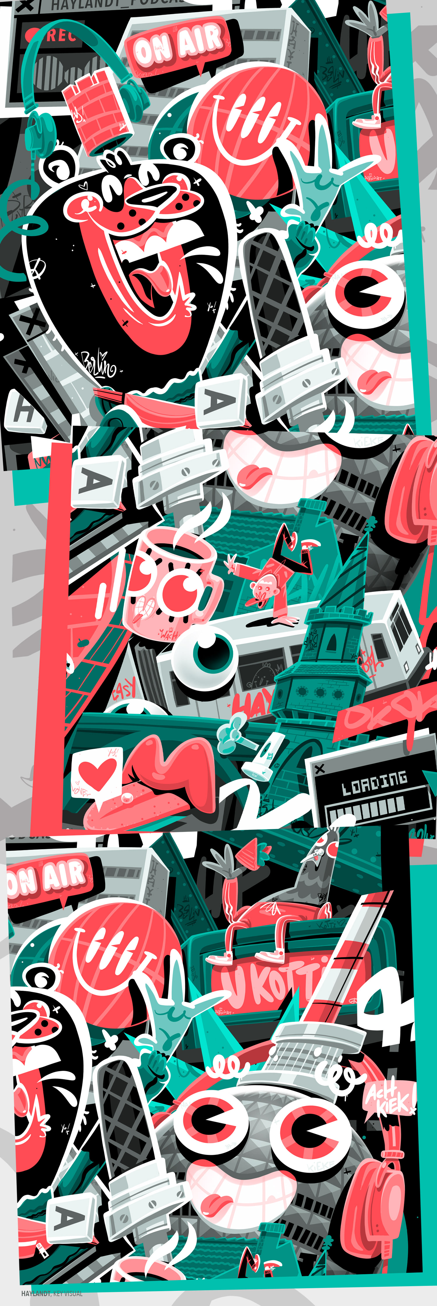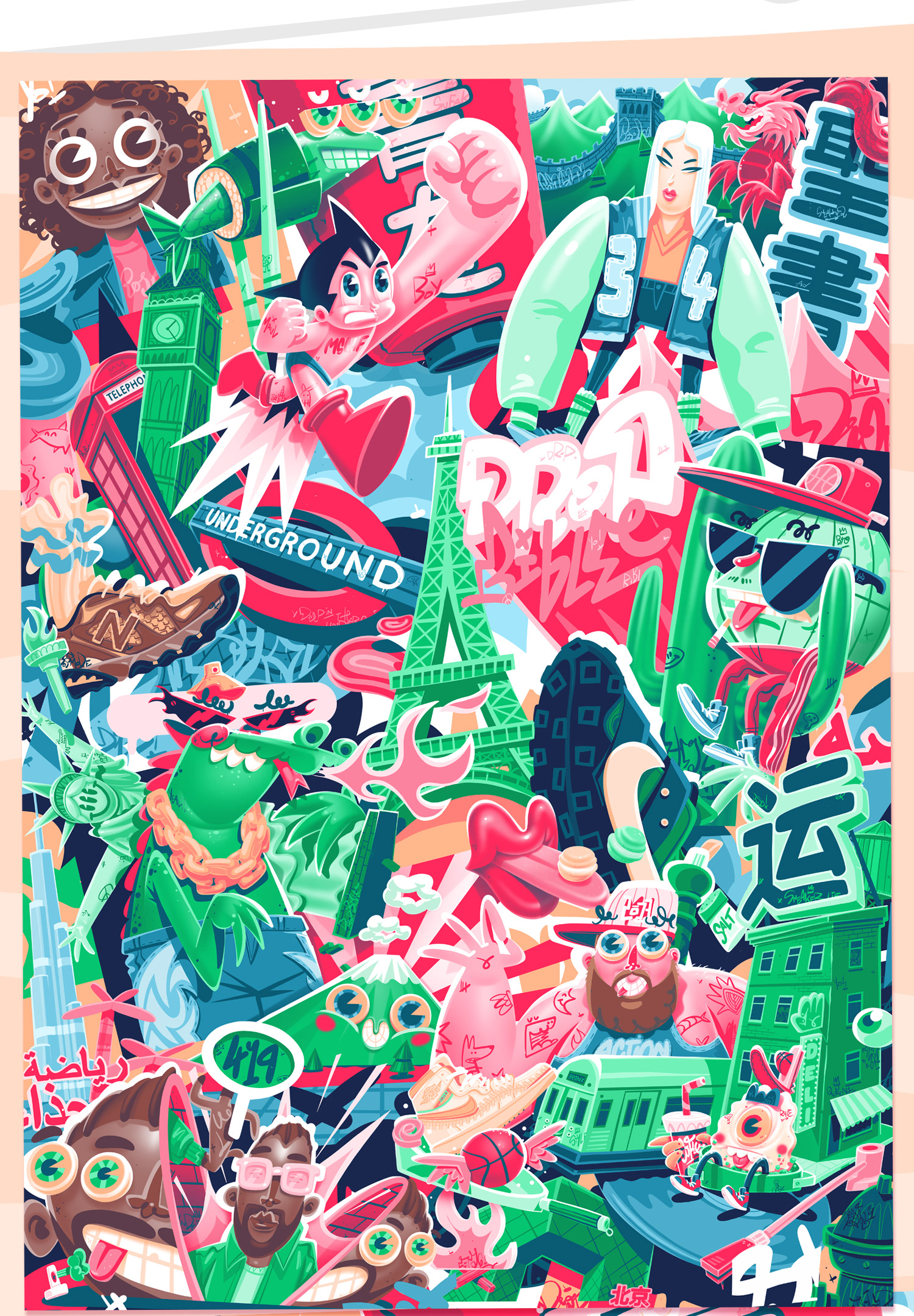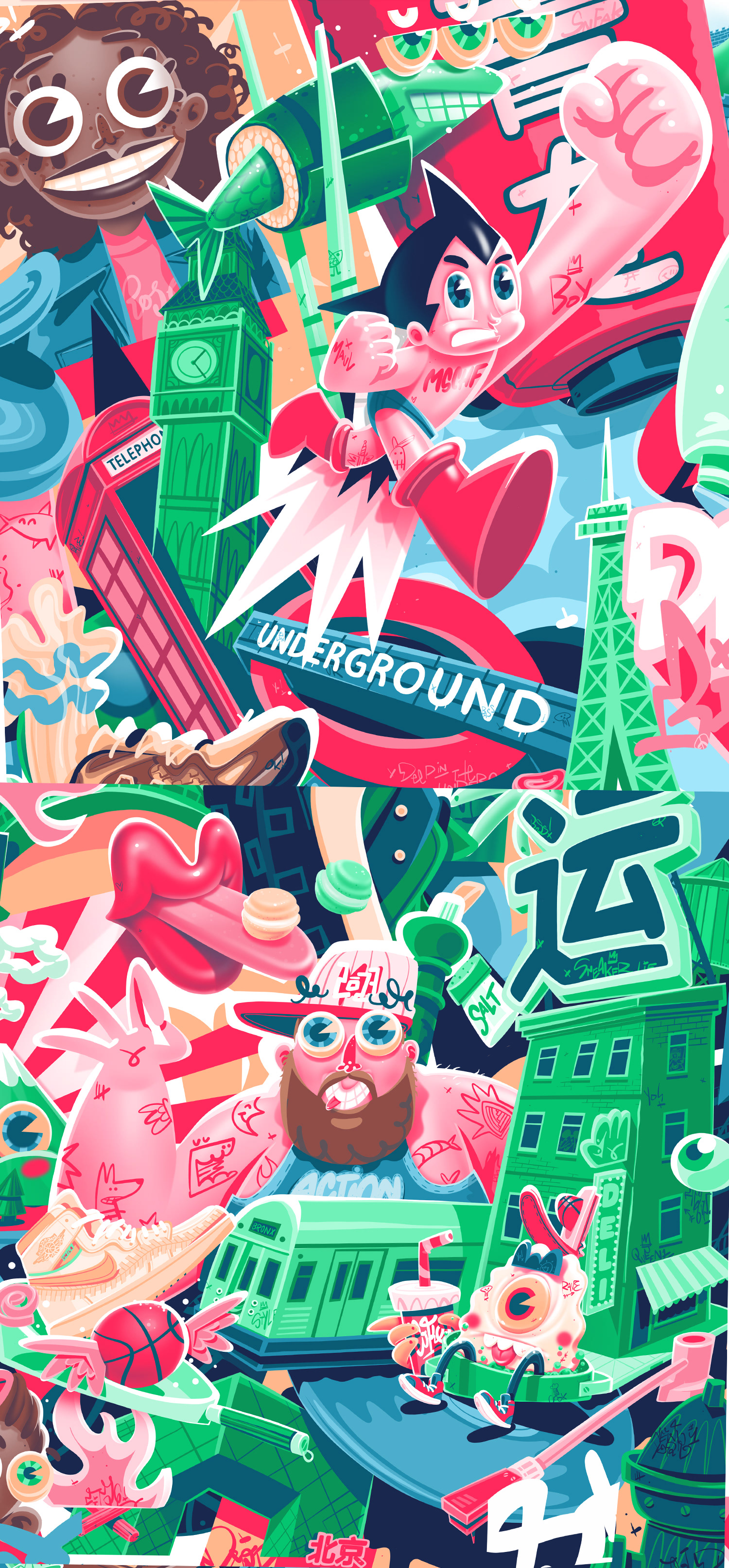 These featured projects are all drawn in a collage style. They are illustrated collages that showcase themes from sneaker lifestyle, sports, music, and urban culture.